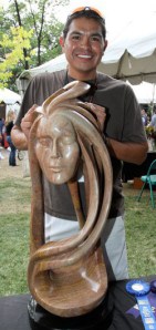 Adrian Wall is a renowned sculptor from Jemez Pueblo. He has won several major awards and is a member of the Indigenous Sculptors Society, an elite group of Native American Sculptors dedicated to the advancement of stone sculpture. Adrian’s work can be found in museums and private collections across the United States. He has been sculpting since his late teens and has always had an affinity for sculpture. Adrian’s primary medium is stone, but he works with clay and bronze as well. The subjects of Adrian’s sculptures most often relate to his Puebloan heritage. Stylistically, Adrian is well known for blending figurative detail with abstract forms. Adrian’s most recent sculptural explorations involve interpreting pueblo pottery designs and symbols in three-dimensional forms.